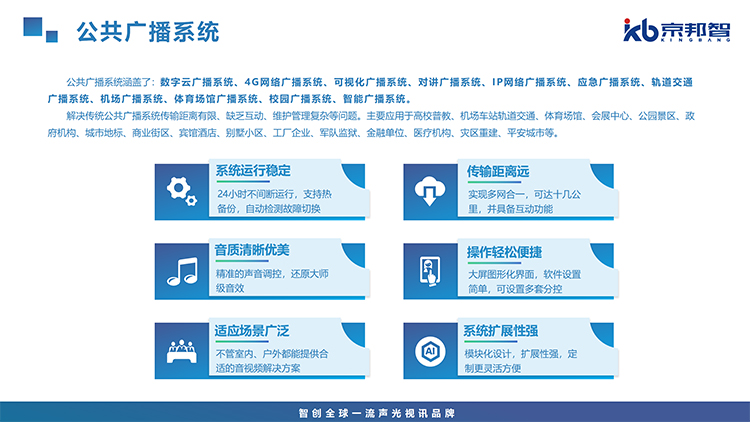IP網(wǎng)絡(luò)廣播系統(tǒng)是基于IP數(shù)據(jù)網(wǎng)絡(luò)平臺(tái),將音頻信號(hào)經(jīng)過數(shù)字編碼以數(shù)據(jù)包形式按TCP\IP協(xié)議在局域網(wǎng)或廣域網(wǎng)上傳送,再由IP網(wǎng)絡(luò)終端解碼的數(shù)字化音頻擴(kuò)聲系統(tǒng)。徹底解決了傳統(tǒng)廣播系統(tǒng)存在的傳輸距離短,管理維護(hù)復(fù)雜,互動(dòng)性差的問題